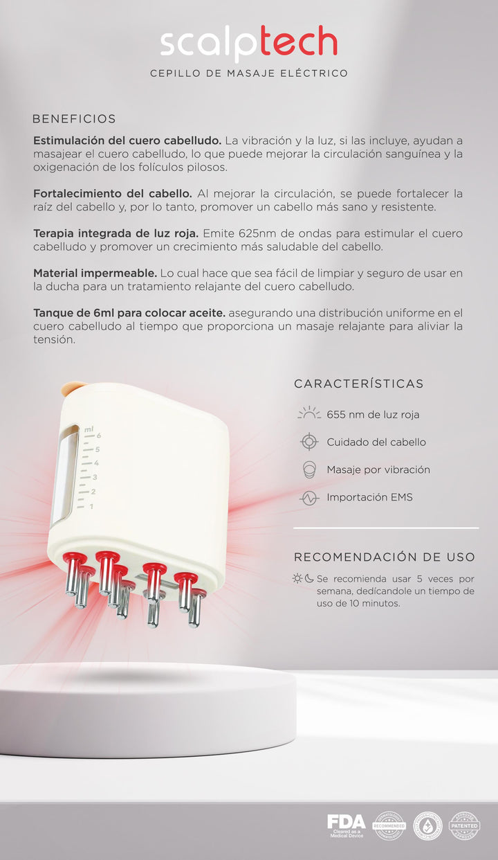 Este innovador cepillo combina tecnología de vibración y luz terapéutica para cuidar tu cabello desde la raíz.