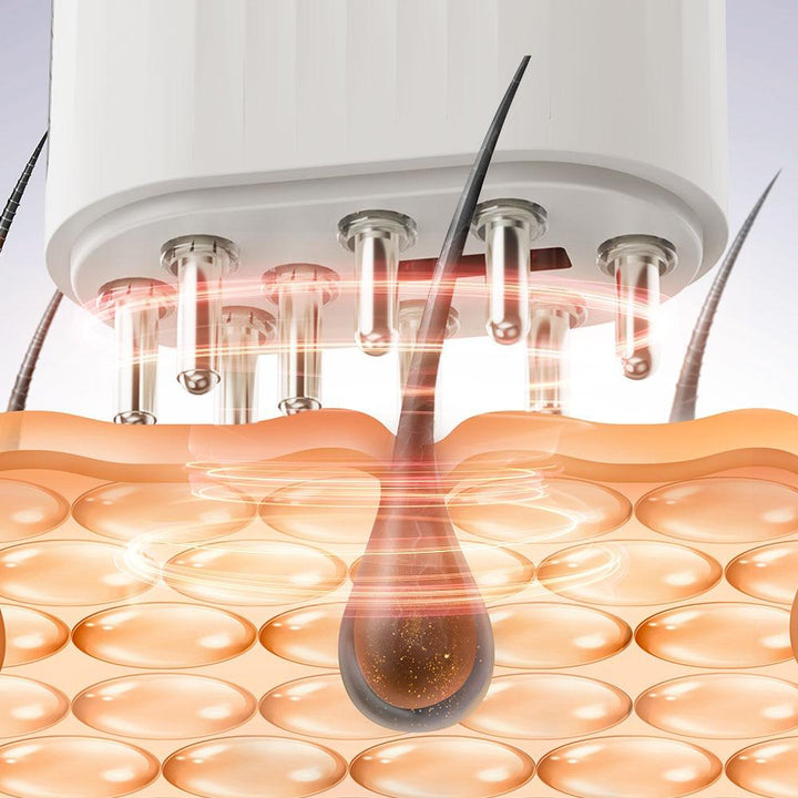 Estimulación del cuero cabelludo: La vibración y la luz ayudan a activar la circulación sanguínea y mejorar la oxigenación de los folículos pilosos.